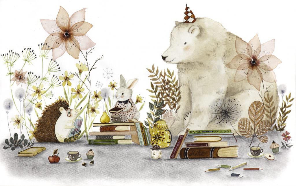 Red Paper Kite is a small Australian publishing house producing distinctive, beautiful picture books. I’ve long admired their roster (I once joined their “Fairies, Dragons, Hungry Bears and Warrior Princesses” contest). This time they invited me to craft an autumn illustration for their website cover—naturally centred on books. A cheerful scene of woodland friends gathered over tea, trading favourite story worlds.