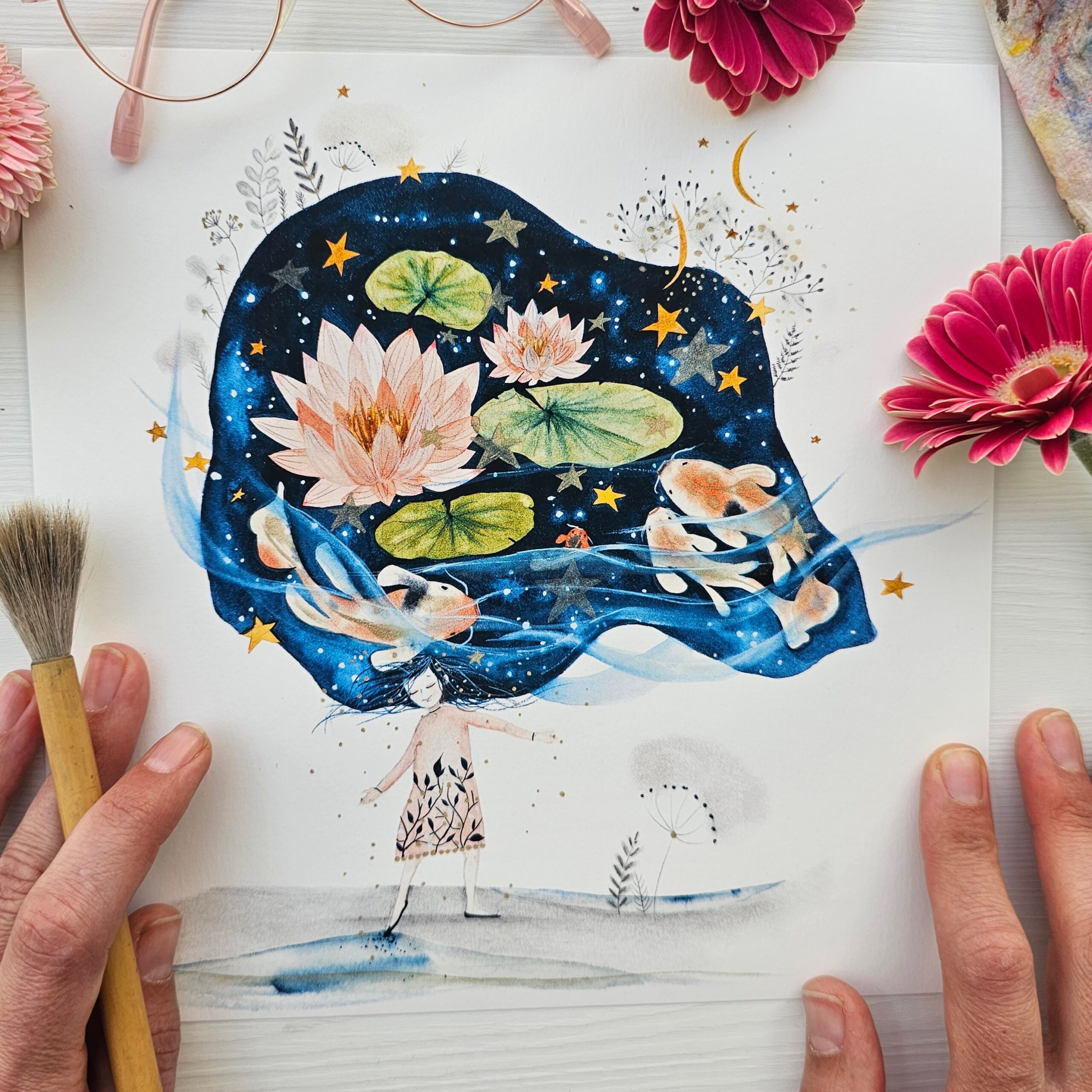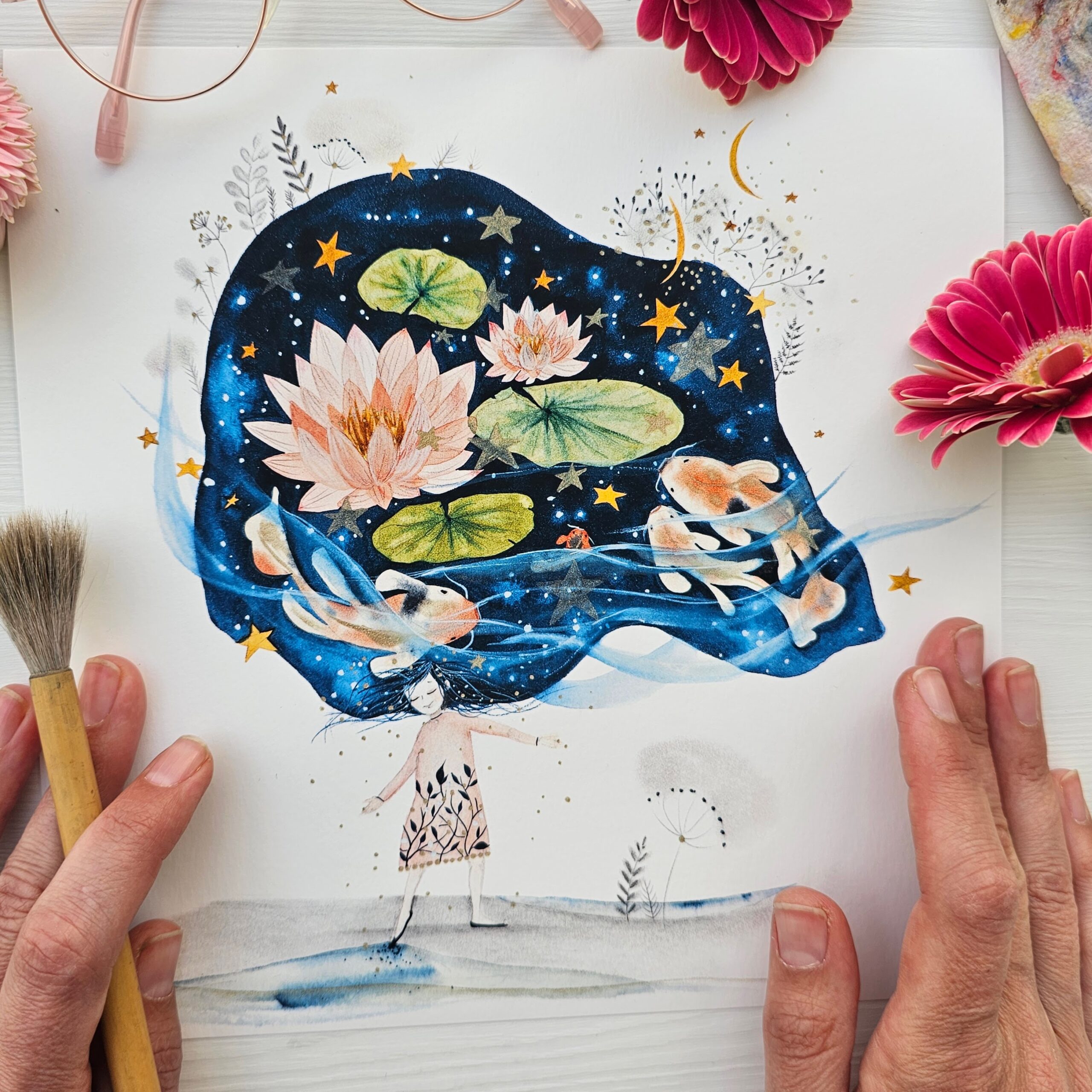 This art print is giclée printed on gallery‑quality paper. Size 230 × 230 mm. Signed on the reverse.