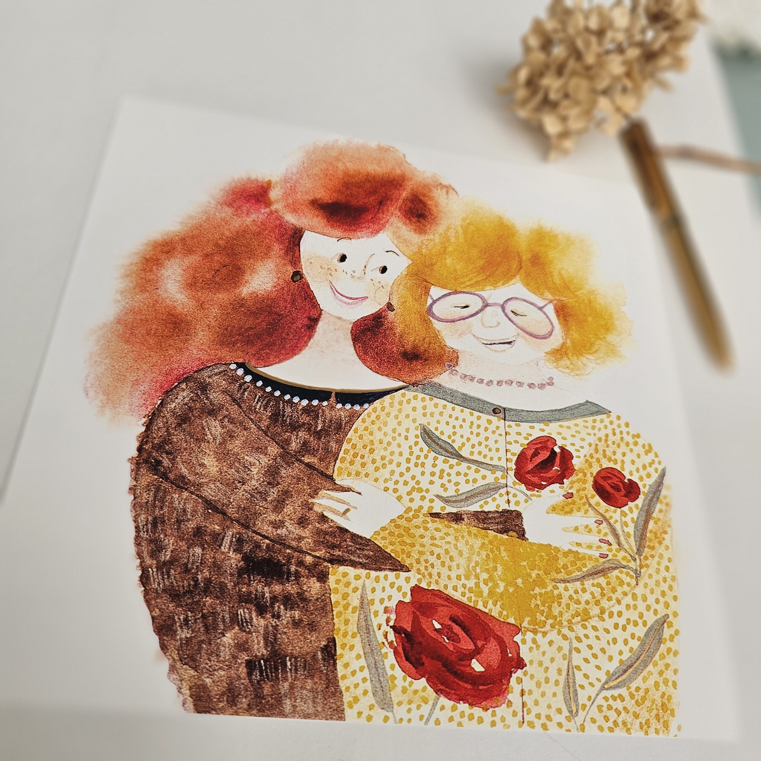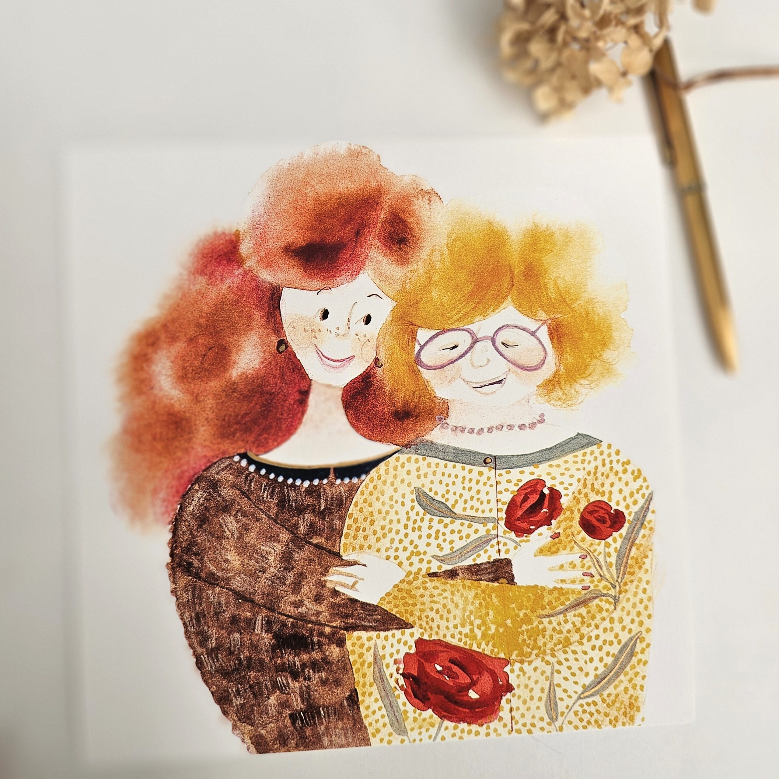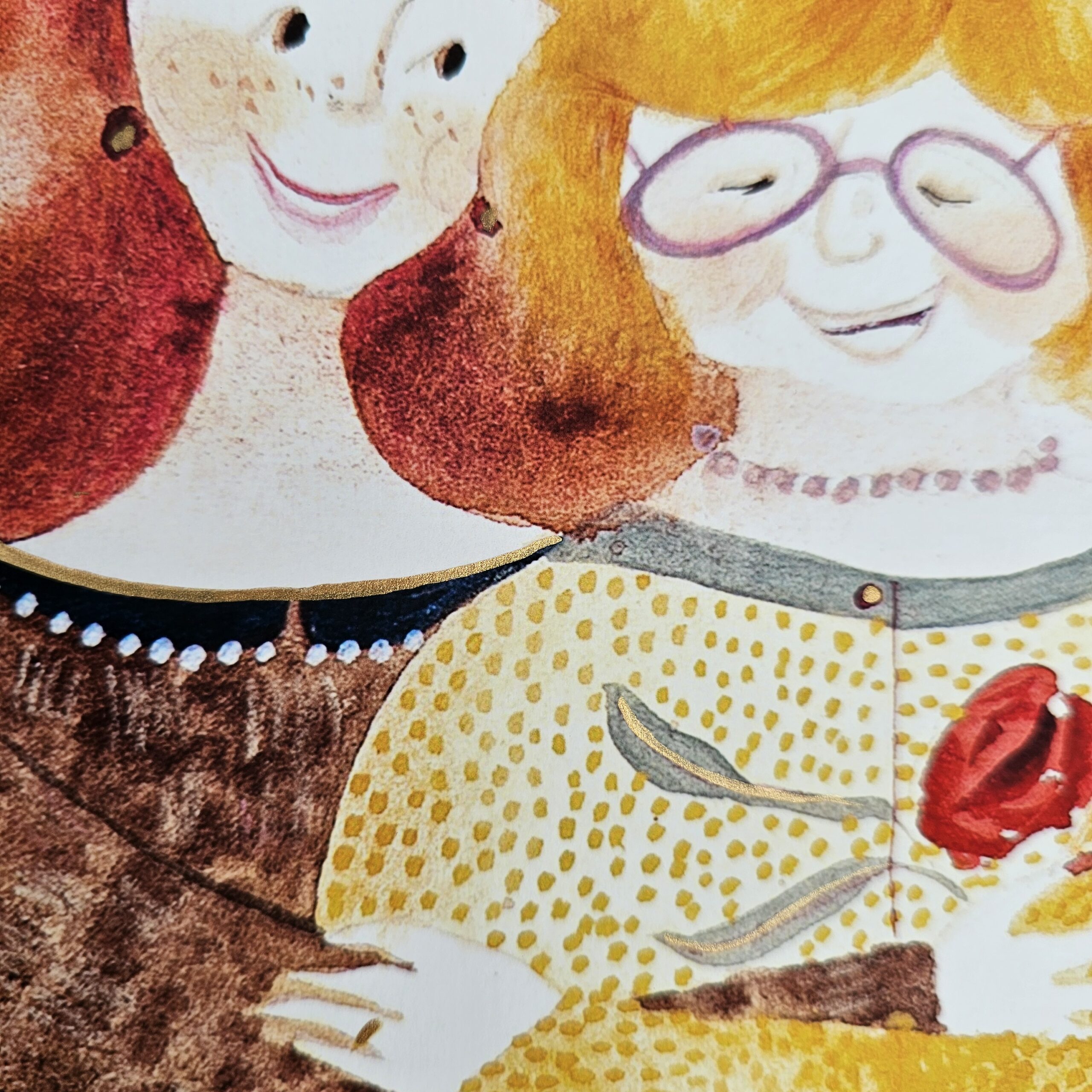 “Thank You, Mum” art print is printed using giclee technique on gallery-quality paper. Hand-painted with gold details. Print size is 230×230 mm. Signed on the back. From the poetry collection Moji mamici