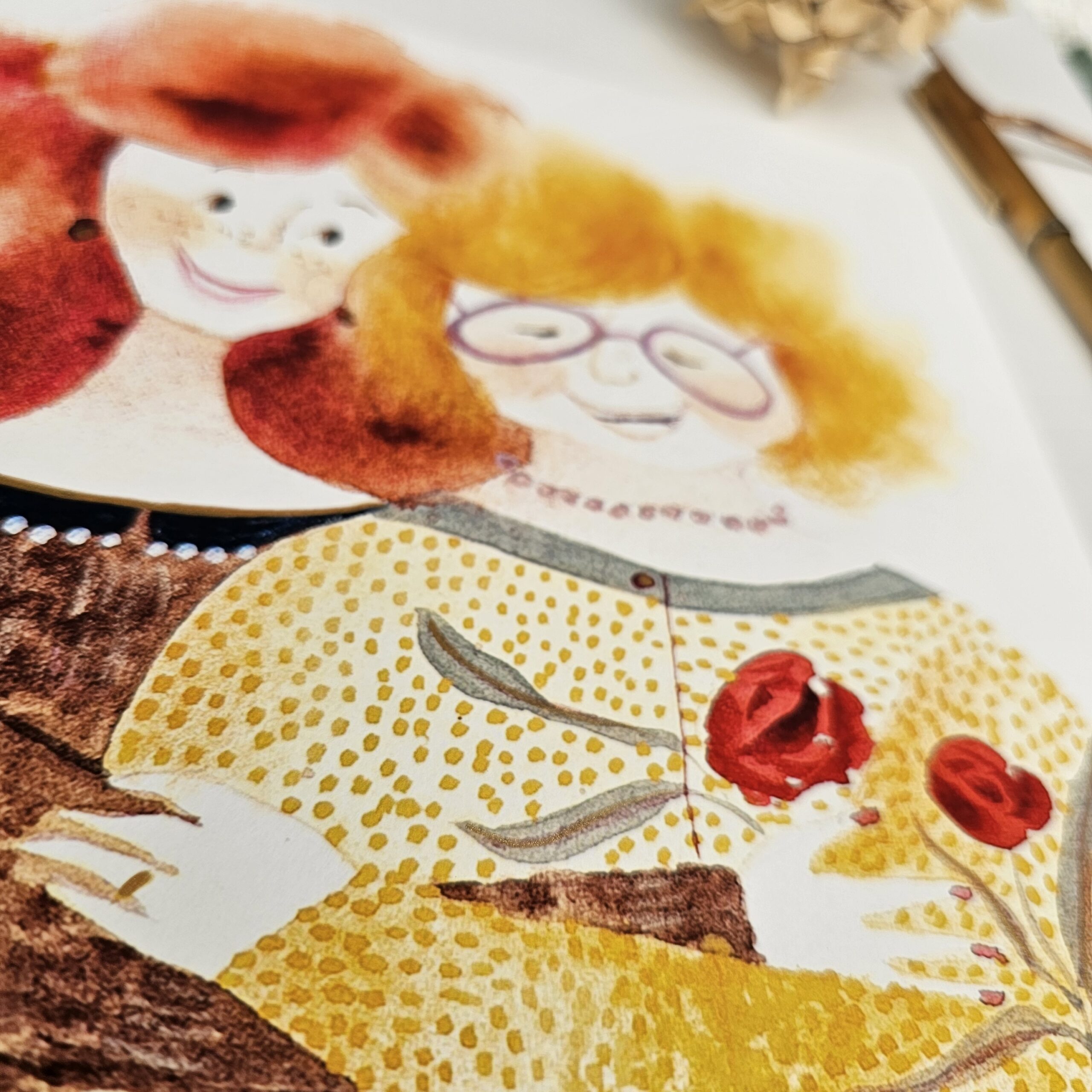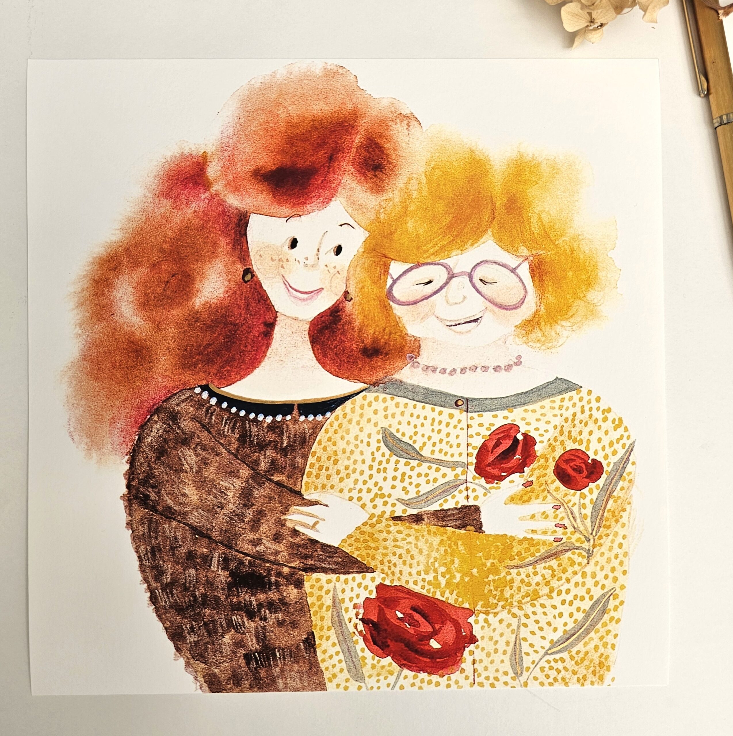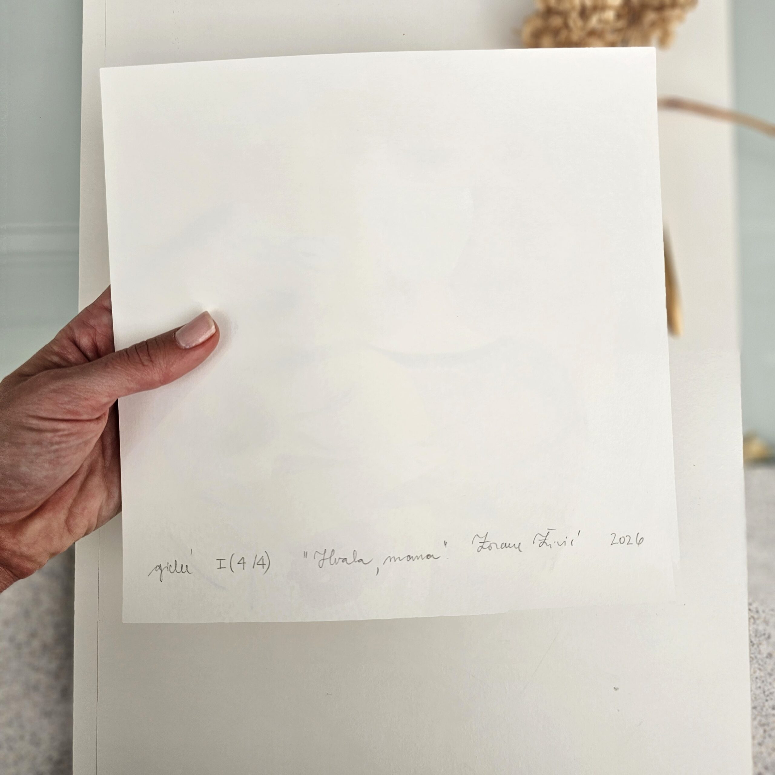 “Thank You, Mum” art print is printed using giclee technique on gallery-quality paper. Hand-painted with gold details. Print size is 230×230 mm. Signed on the back. From the poetry collection Moji mamici