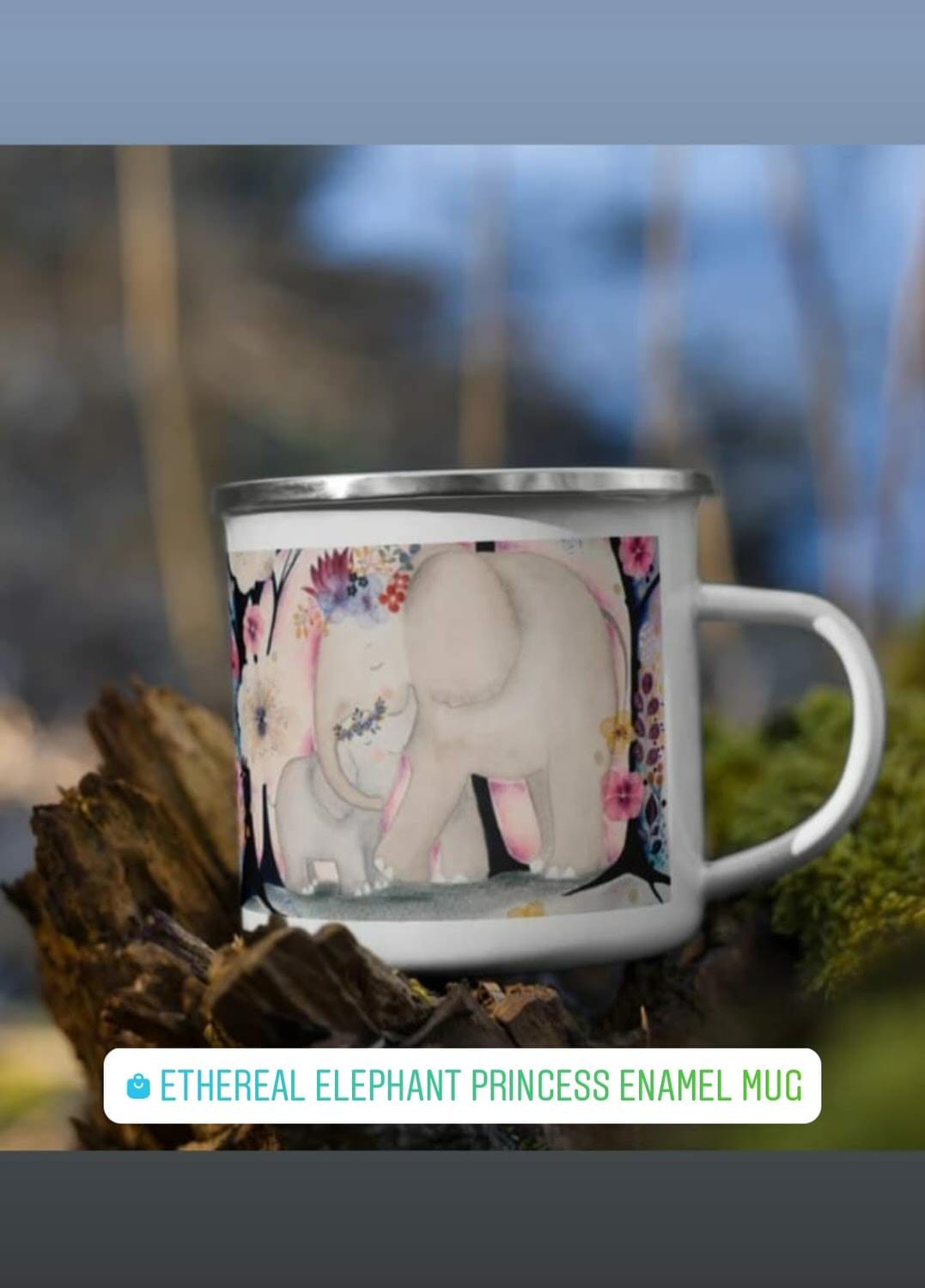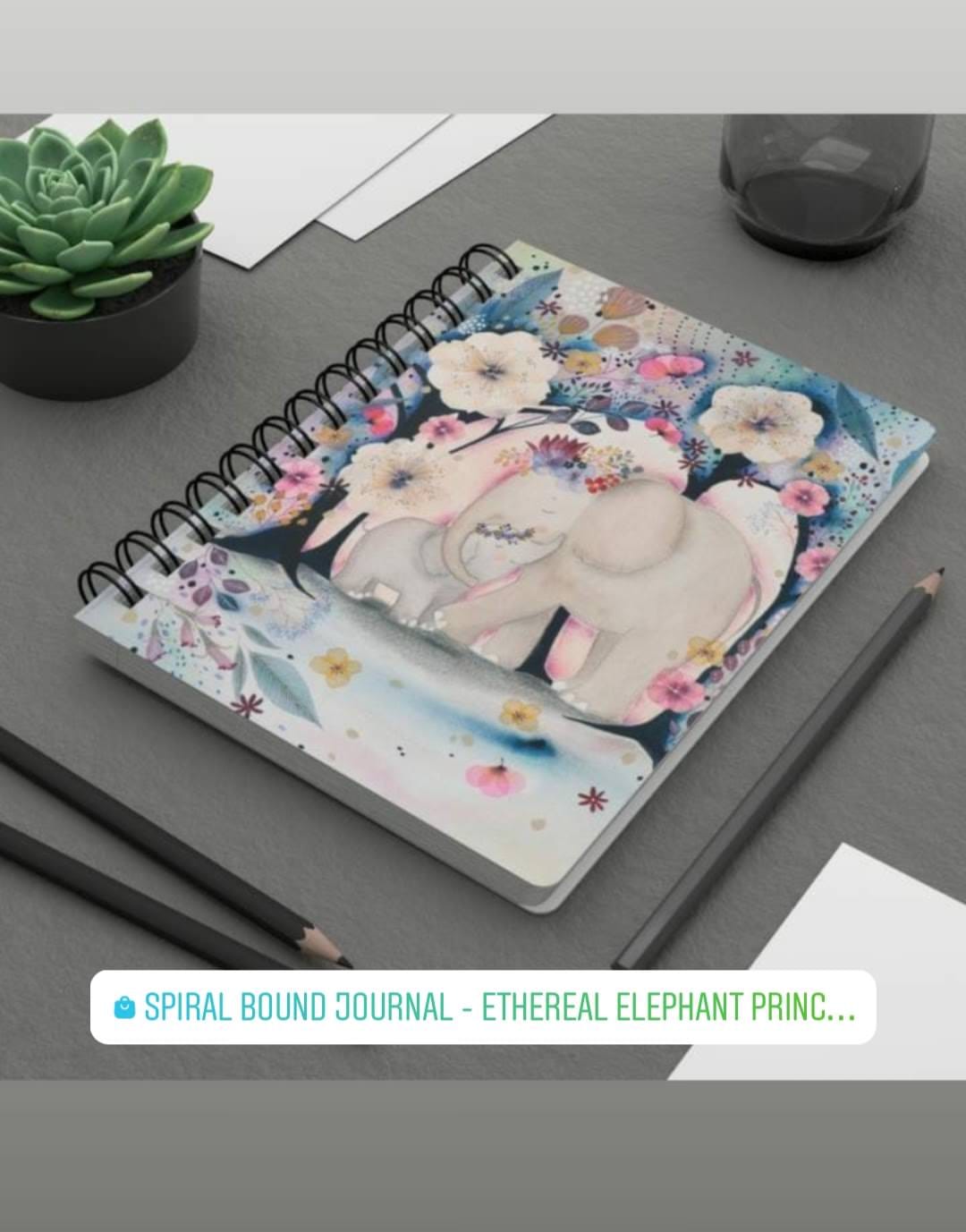 Marilyne me je kontaktirala, ker si je zaželela ilustracijo slona v mojem stilu. Za njene izdelke sem upodobila čuten prizor med mamo in mladičem, ki sta obdana s cvetjem. Motiv je na voljo na raznoraznih artiklih – zvezkih, skodelicah, flaškah ino. Veseli me, da sem lahko prispevala k njenemu poslanstvu.
